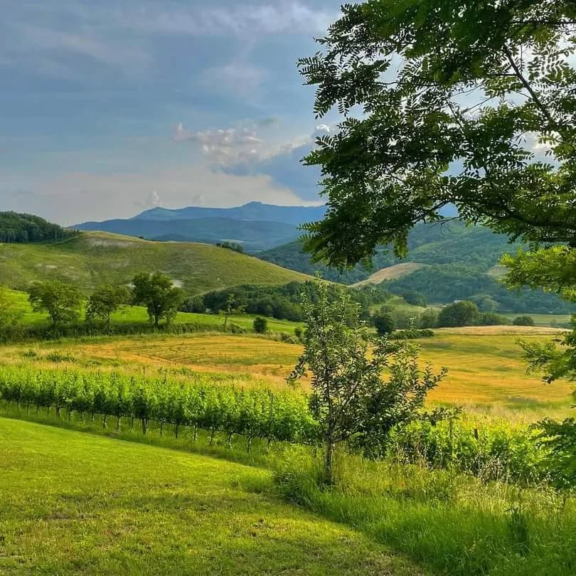 Alloggeremo nell’entroterra marchigiano, in una tenuta con piscina, azienda vinicola e appartamenti indipendenti