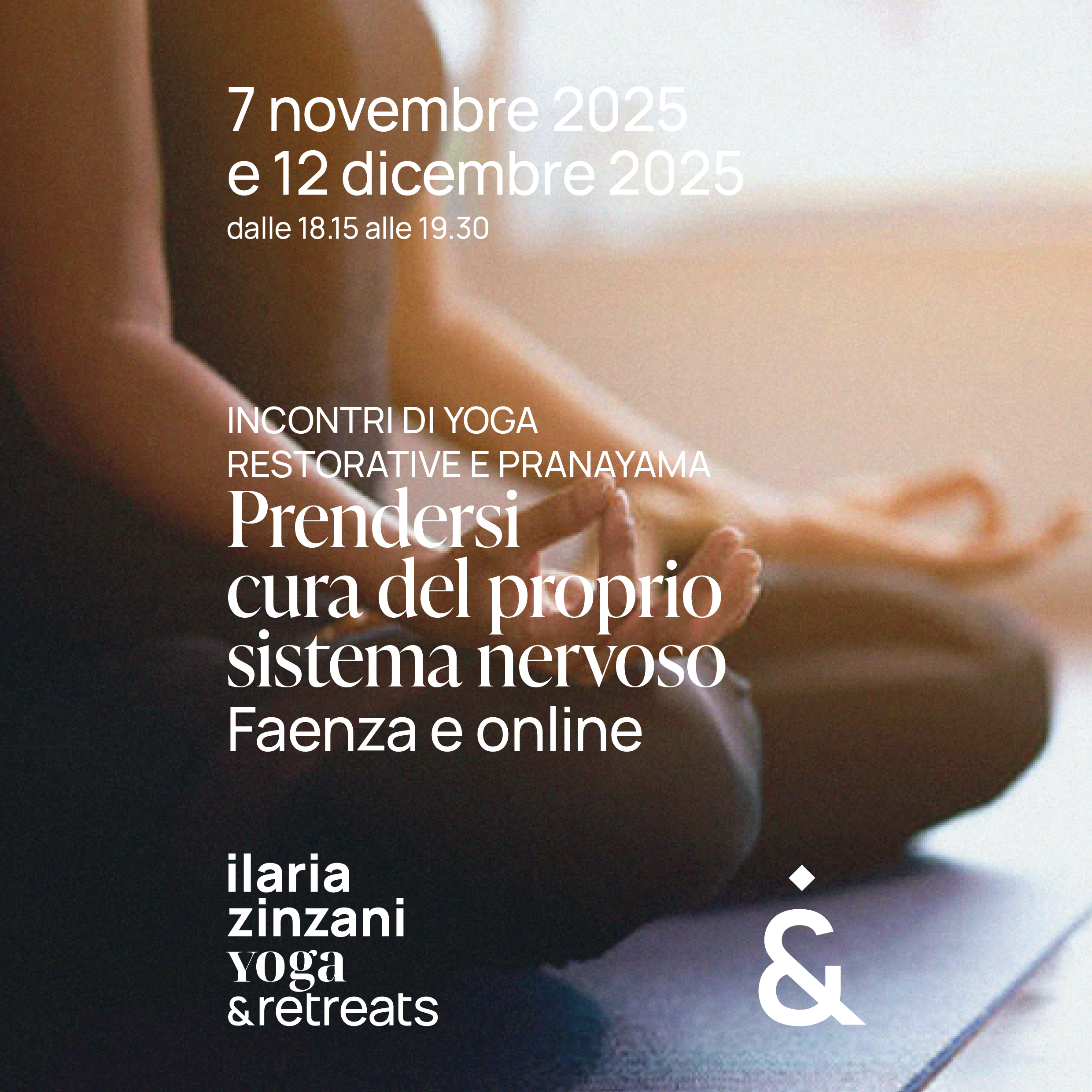 Venerdì 7 novembre e venerdì 12 dicembre 2025 dalle 18.15 alle 19.30 ci incontreremo a Faenza, ma sarà possibile iscriversi anche alla diretta streaming, per prenderci cura del nostro sistema nervoso, grazie allo yoga restorative e pranayama